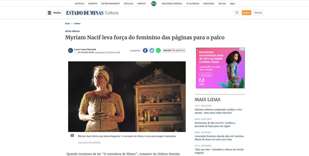 “La Contadora de Películas” comencé a escribirla como un monólogo teatral, es que me regocijo cada vez que la novela es llevada a las tablas. De las veintitrés traducciones que tiene el libro, una de las más bellas y bien cuidadas es la edición publicada en Brasil. Por lo mismo creo, confío, intuyo que, ahora, el Grupo Atrás do Pano hará la versión teatral con el mismo cariño y cuidado que la obra se merece. Al fin y al cabo la protagonista, a su modo, es una actriz de teatro. Escribí La contadora de películas siguiendo el precepto de León Tolstói: “Cuenta tu aldea y Contarás el mundo”. Conté mi aldea y su historia se hizo universal. Y es que la Contadora de Películas es un homenaje a la narración, a contar historias.