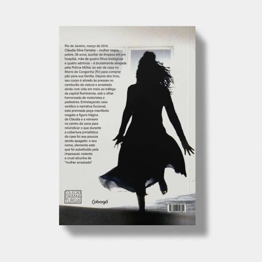 Rio de Janeiro, 2014. Cláudia Silva Ferreira – mulher negra, pobre, 38 anos, mãe de 4 filhos biológicos e 4 adotivos – é brutalmente alvejada pela Polícia Militar ao sair de casa no Morro da Congonha (RJ) para comprar pão pra sua família. Após, seu corpo é atirado às pressas no camburão da viatura e arrastado ainda com vida em meio ao tráfego da capital fluminense sob o olhar horrorizado de motoristas e pedestres. Entrelaçando fato verídico e ficcional, esta peça-manifesto mostra a figura trágica de Cláudia reivindicando o que durante a cobertura jornalística do caso foi aos poucos apagado: o seu nome, elemento este que foi substituído pela impessoal, violenta e cruel alcunha de “Mulher Arrastada”.