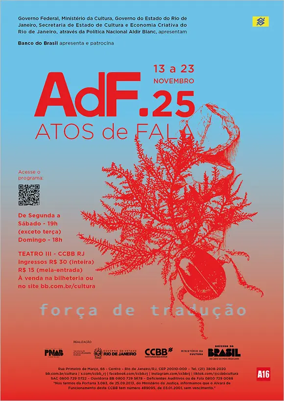 Todas as informações aqui prestadas são de responsabilidade dos artistas, coletivos ou suas assessorias de imprensa. Em caso de divergência, o e-mail do responsável encontra-se ao final de cada página do espetáculo ou performance anunciado.