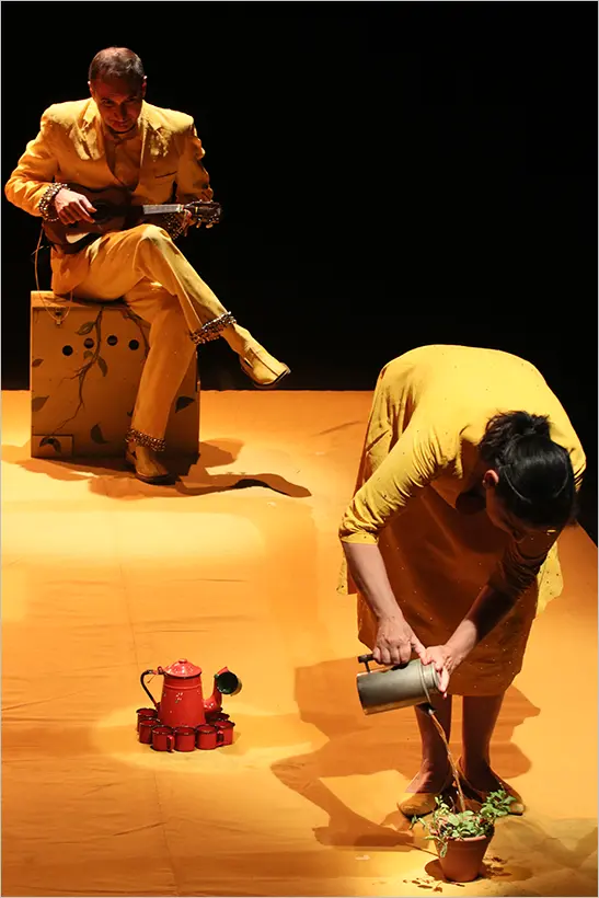 Valendo-se da linguagem do Teatro de Objetos, da qual o Sobrevento é referência, A Casa que Espera, com poesia e delicadeza, utiliza objetos simples, como bules, xícaras, pratos e um pezinho de hortelã, para recuperar as memórias dos cuidados recebidos, dos gestos cotidianos e vínculos afetivos que nos formam como pessoas. Cenas como o chá preparado pelo pai, o jardim cuidado pela mãe e até a tartaruga que um dia partiu levando a sua casinha nas costas costuram a reflexão sobre os ciclos da vida: nascer, crescer, partir, permanecer e, principalmente, deixar partir.