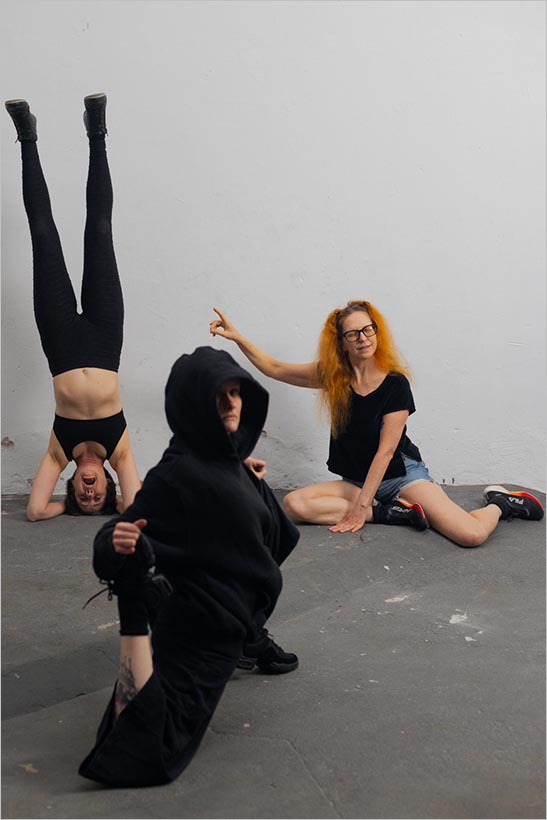 3 diferentes. Uma quer ficar pra cima, outra quer ficar em baixo, uma quer sentir no palco como nunca. Equilibra a cabeça, todo dia, toda hora. Uma hora, equilibra com o dedo do meio. Outra hora, faz a parada de cabeça. Param, pausam, caminham, pulam, tremem, fazem tremer e fazem o teatro – lugar do palco – tremer.