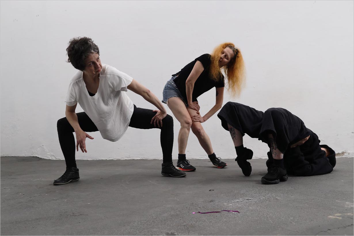 O trabalho de dança constrói movidas energéticas que mobilizam estados de corpo a partir do conceito de Walter Benjamin sobre Choque. Anestesiadas, precarizadas e cheias dos estímulos externos/mundo, refletem sobre relações de poder e comando respondendo com alguns desânimos as solicitações mundanas para corpos desestabilizados. Juntas e lentas, vivem em seus corpos a experiência de derretimento, escoramento, tosse – contaminação, escuta, equilíbrio, sacudida e descanso.
