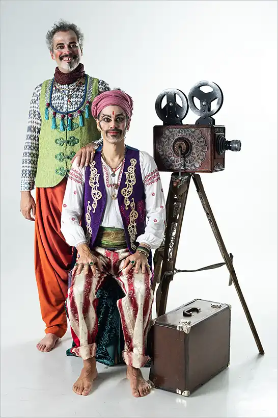 Cidades Invisíveis, uma farsa inspirada na obra de Italo Calvino é uma comédia farsesca que reimagina o encontro entre Marco Polo — um ambulante que carrega um cinematógrafo com imagens das cidades visitadas — e o imperador Kublai Khan. A encenação faz uma ponte entre desertos orientais e o Brasil profundo, utilizando metateatro e linguagem circense para recontar metaforicamente a obra de Calvino de forma acessível.