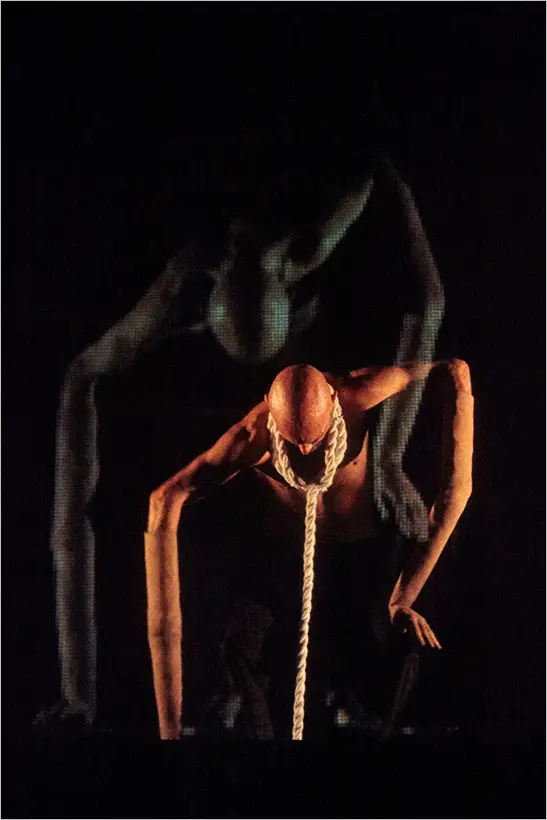 Nenhuma palavra é dita em cena, a dramaturgia é guiada pelos corpos em diálogo com as artes visuais, o cinema, a dança e o teatro. Nesse navegar por várias linguagens, os significados se apresentam diversos e chegam ao público em camadas múltiplas e plurais, em que cada gesto e cada silêncio se tornam portadores de significado, simbolismo e poesia.