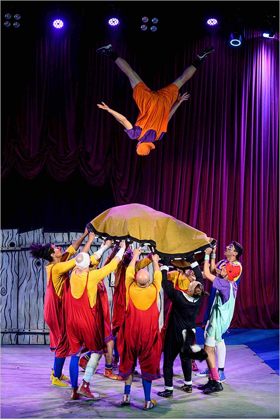 Inspirado em desenhos animados e sem o uso de falas, Esquadrão Bombelhaço abusa da comicidade física, além de performances com malabarismos, manipulação de objetos e acrobacias aéreas no equipamento “pizza”. Entre topadas, pontapés e tropeções, a tropa desordenada guia o salvamento do bichano com muito humor e performances circenses.