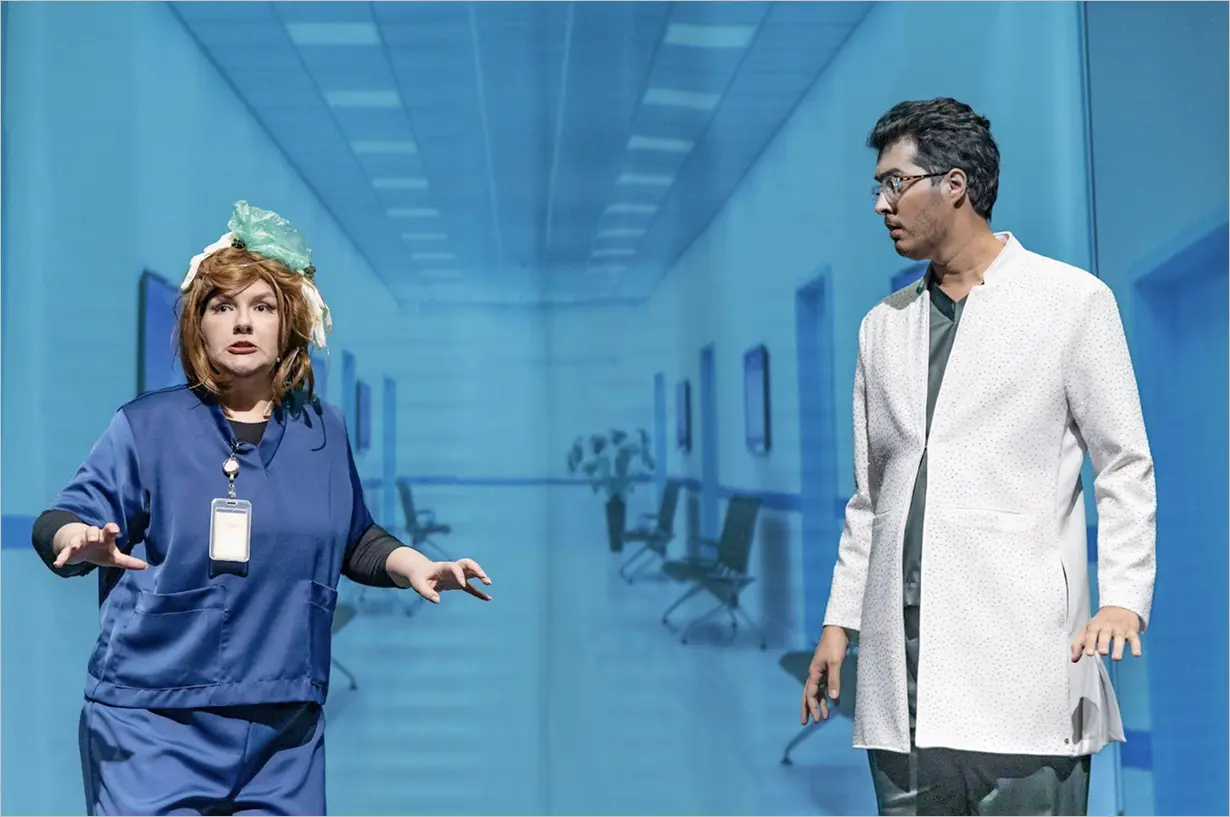 Thaisa Damous interpreta diversos personagens que interagem com o médico Bruno e com a enfermeira Sandra ao longo da peça. No total, o espetáculo apresenta 11 personagens no palco, como a doutora Dinossauro e a doutora Herdeira, que retratam figuras bastante conhecidas por quem já passou por um hospital. “Nossa ideia é realmente fazer uma peça de teatro com momentos e elementos do stand-up”, explica Bruno.