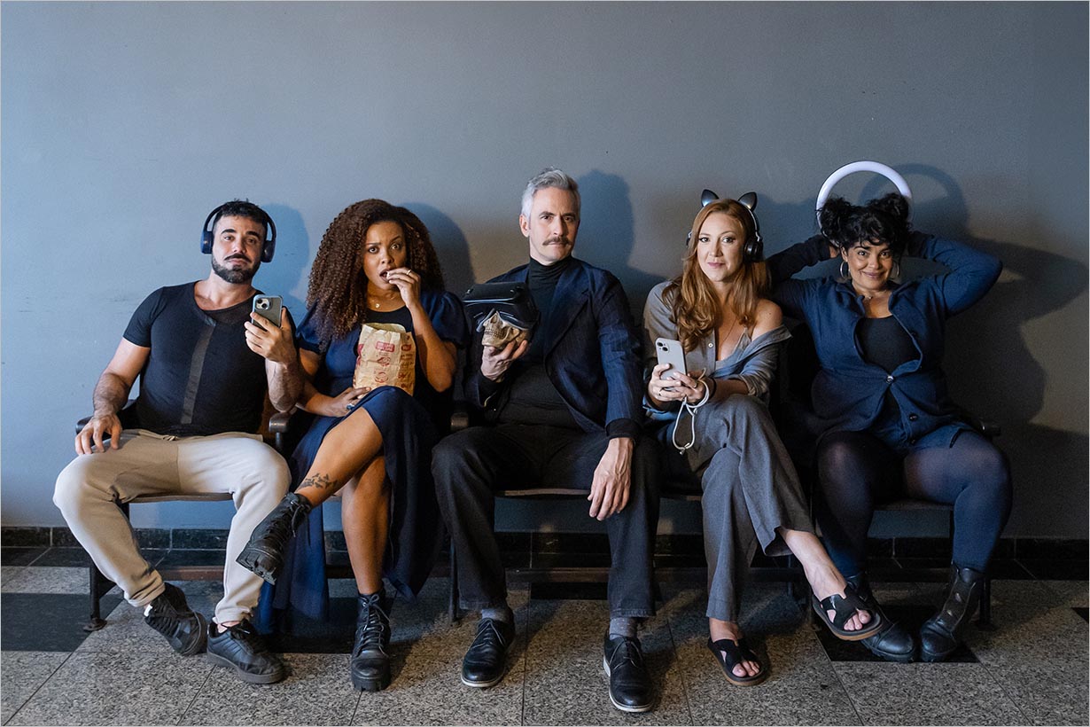 Futuro é uma comédia inédita que mistura sátira de clássicos da dramaturgia, cultura digital e relações em crise. A peça da Quase Companhia, que completa 15 anos, ironiza clássicos da dramaturgia e os Reels das redes sociais, analisando de forma bem humorada a distração e como o algoritmo influencia nossos comportamentos.