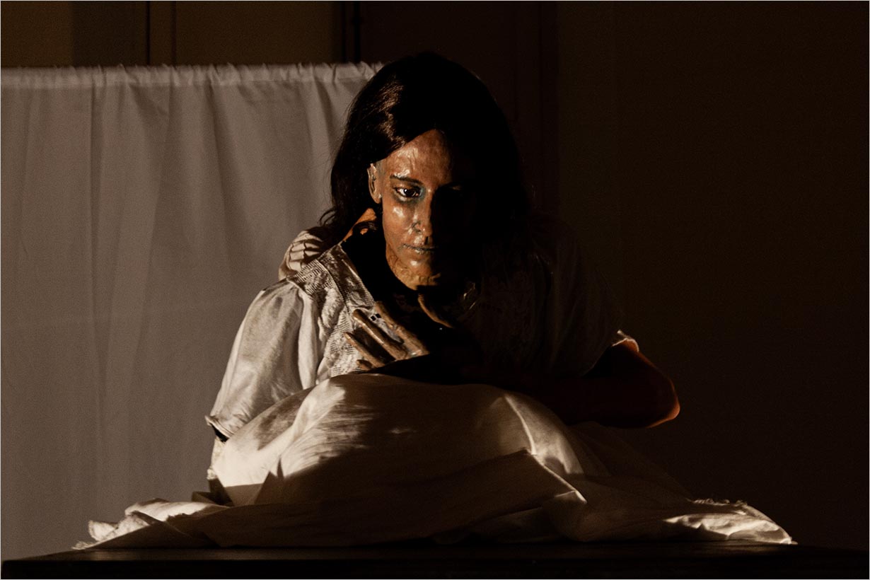 Uma mulher grávida, prestes a dar à luz, transita entre imagens do feminino que oscilam entre a santidade e a histeria. Isolada por um médico que a considera delirante, é submetida a manipulações que geram distorções humanas. Em um ambiente povoado por figuras e sombras, a personagem constrói estratégias para elaborar e superar os abusos sofridos.