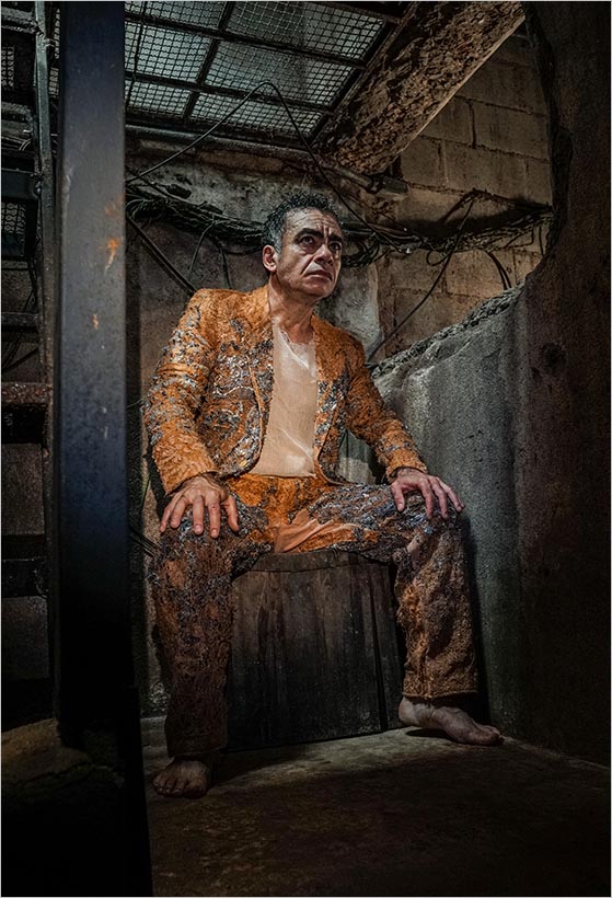 O personagem principal é vivido por Vanderlei Bernardino. A partir de conversas e improvisações entre a atuação, a direção e a dramaturgia, o processo de adaptação passou por aproximações cênicas dos fragmentos do texto, no intuito de absorver o essencial para traduzir cenicamente o romance e torná-lo mais próximo aos espectadores.