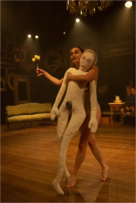 O cenário, que recebeu o Prêmio APTR de Melhor Cenário em 2019, transforma os espectadores em convidados da festa na ficção. É uma instalação artística com dezenas de molduras de quadros projetada pelo multiartista Ronaldo Fraga, em diálogo com a videoarte do cineasta Cao Guimarães.