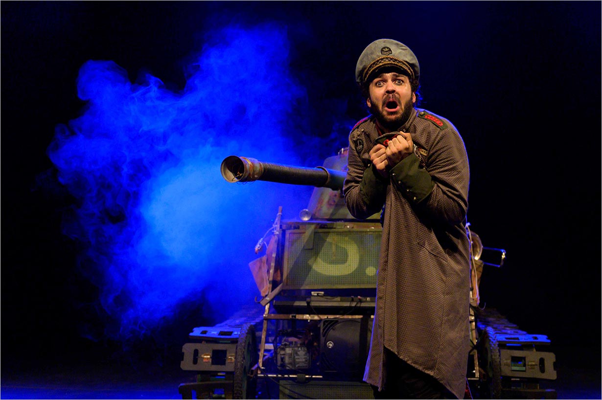 São bufões que já tentaram se incluir a qualquer custo, agora simplesmente agem, como máquinas, frias e solitárias, de guerra. Sem deixar de lado o riso, o espetáculo mostra a imobilidade desses “soldados” na trincheira do cotidiano, sempre esperando que a vida mude e que venham dias melhores.
