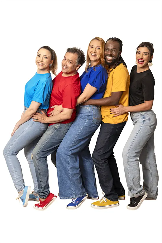 Com: Bia Guedes, Carol Cezar, Hugo Germano, Rodrigo Fagundes e Tati Infante