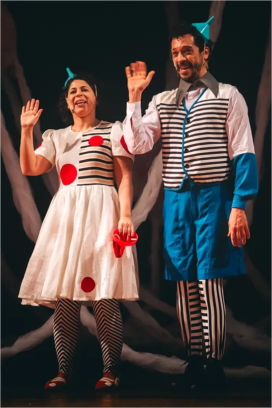 Informações sobre acessibilidade: o espetáculo oferece recursos sensoriais, como fones abafadores de ruído para redução dos impactos sonoros e massinha de modelar como opção para manipulação sensorial