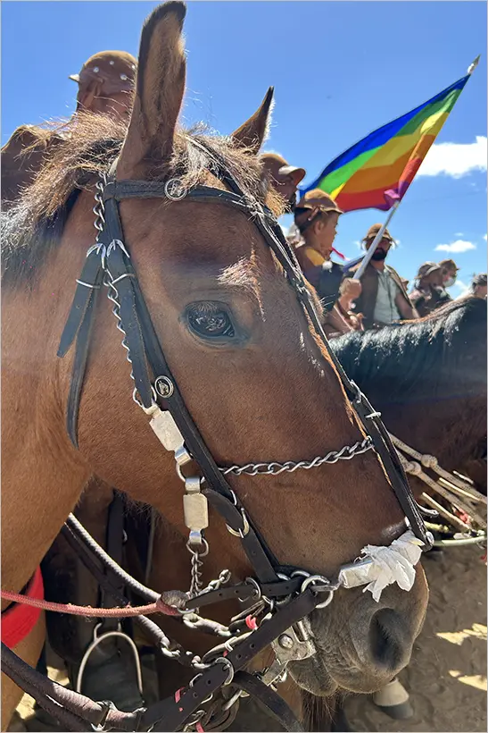 Teatro-Baile conta Missa do Vaqueiro – em processo segue o jogo cênico habitual da companhia de borrar a fronteira entre palco e plateia. Os espectadores são convidados a dançar e a degustar alimentos e bebidas como paçoca, kariri com mel e pinga com mel e limão. A dramaturgia é coletiva e a equipe criativa está toda em cena.