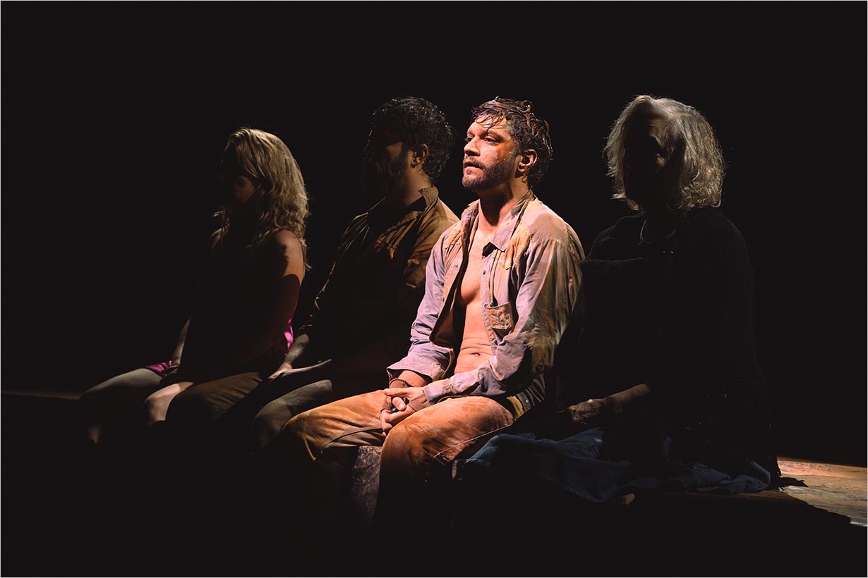 O diretor Rodrigo Portella revestiu o palco com uma grande e rústica lona, sobre a qual há lama e água, numa alusão ao solo rural, e também numa provocação à estabilidade dos atores, que se (des)equilibram ao longo do espetáculo. A instabilidade permanente reflete as tensões entre as personagens.