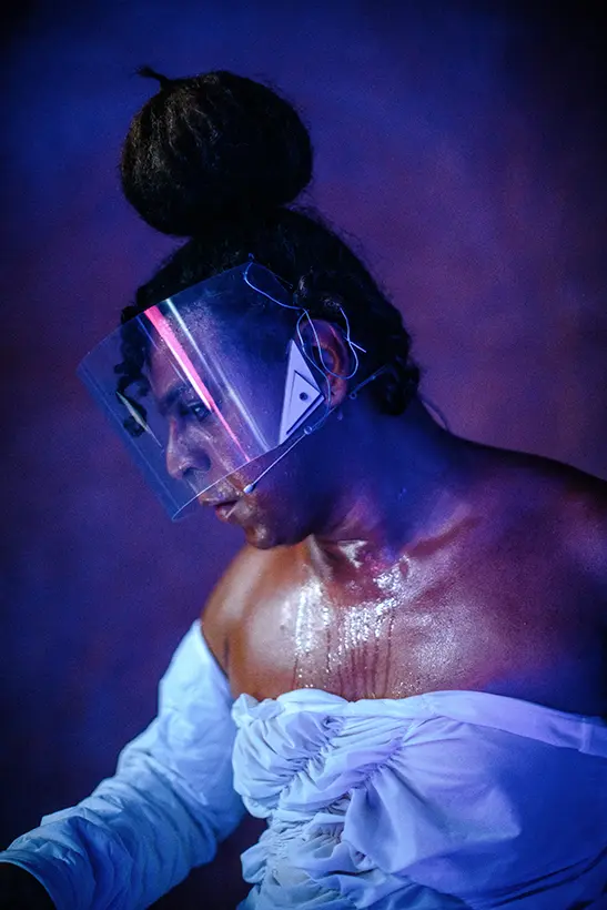 “Eu queria falar de uma arte negra, mas longe do trauma. Para isso, me baseei no trabalho do duo de música eletrônica norte-americano Drexciya, que elaborou a mitologia de pessoas que pularam dos navios durante o período da escravidão. Elas criam um mundo subaquático e é através dele que viajam por fendas bidimensionais”, conta Podeserdesligado.