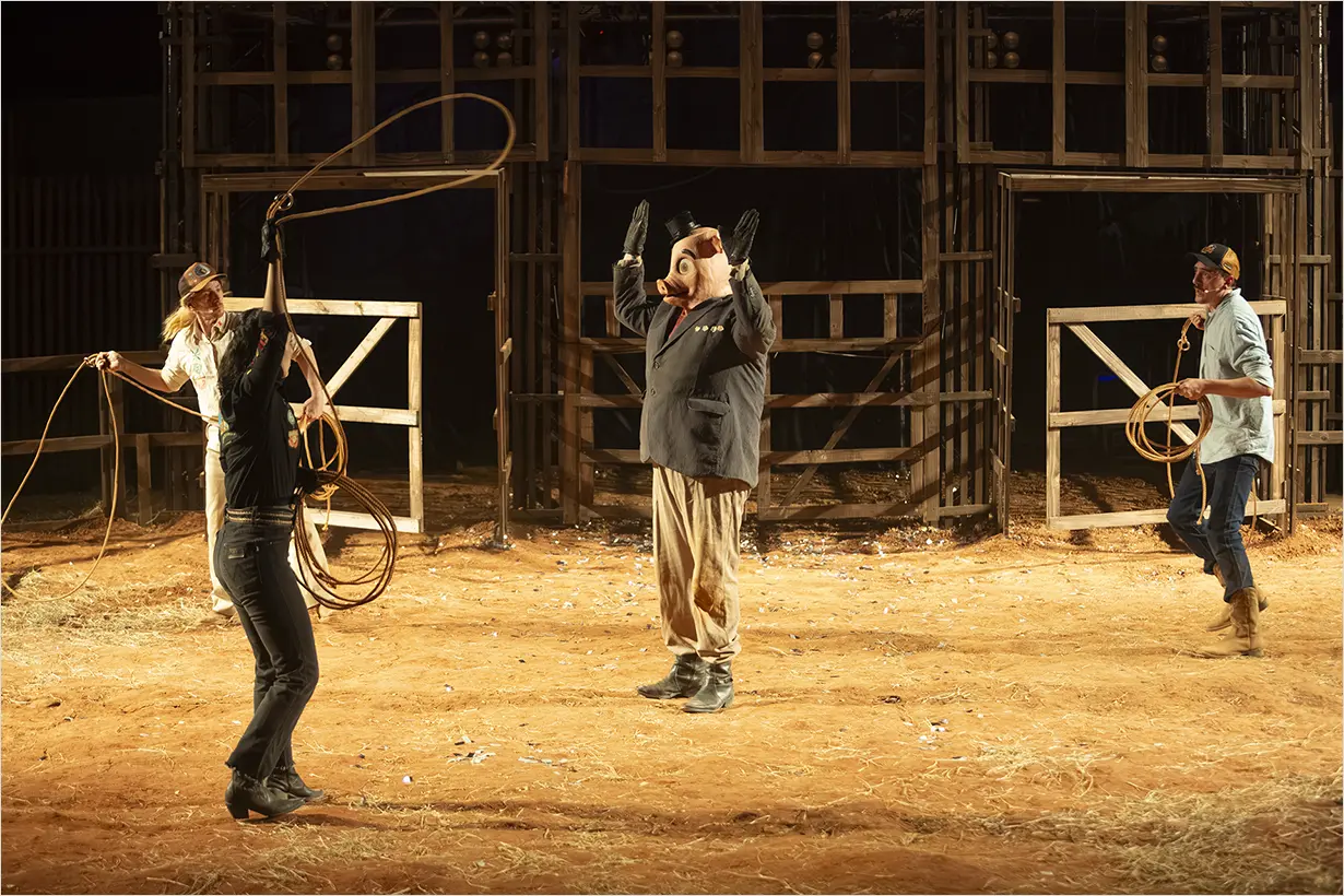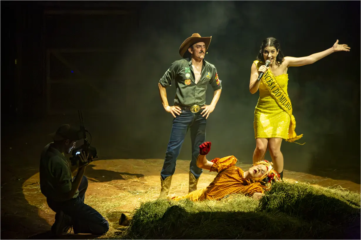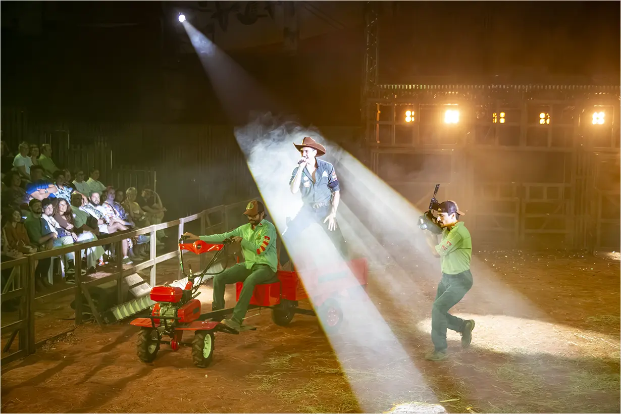 O espetáculo lança um olhar crítico sobre o universo rural e a influência do agronegócio na sociedade brasileira, usando o rodeio como linguagem cênica. Convoca personagens clássicos do imaginário nacional como Emília, Narizinho, Pedrinho, Tia Nastácia, Dona Benta, Visconde de Sabugosa e Marquês de Rabicó, em releitura provocadora inspirada em Monteiro Lobato.