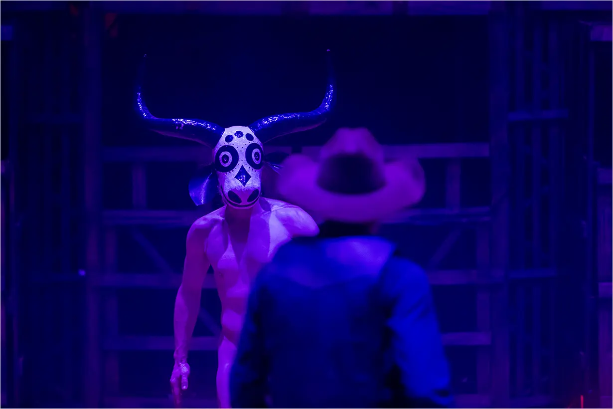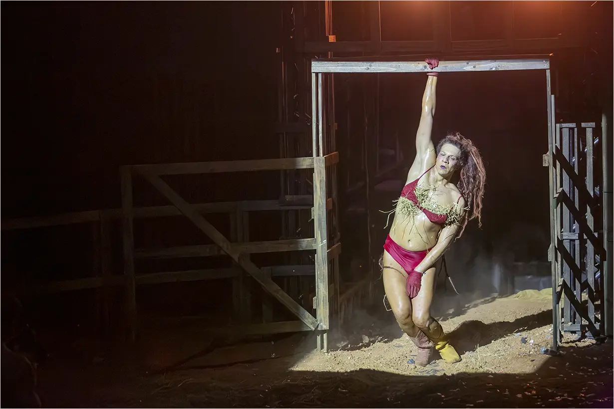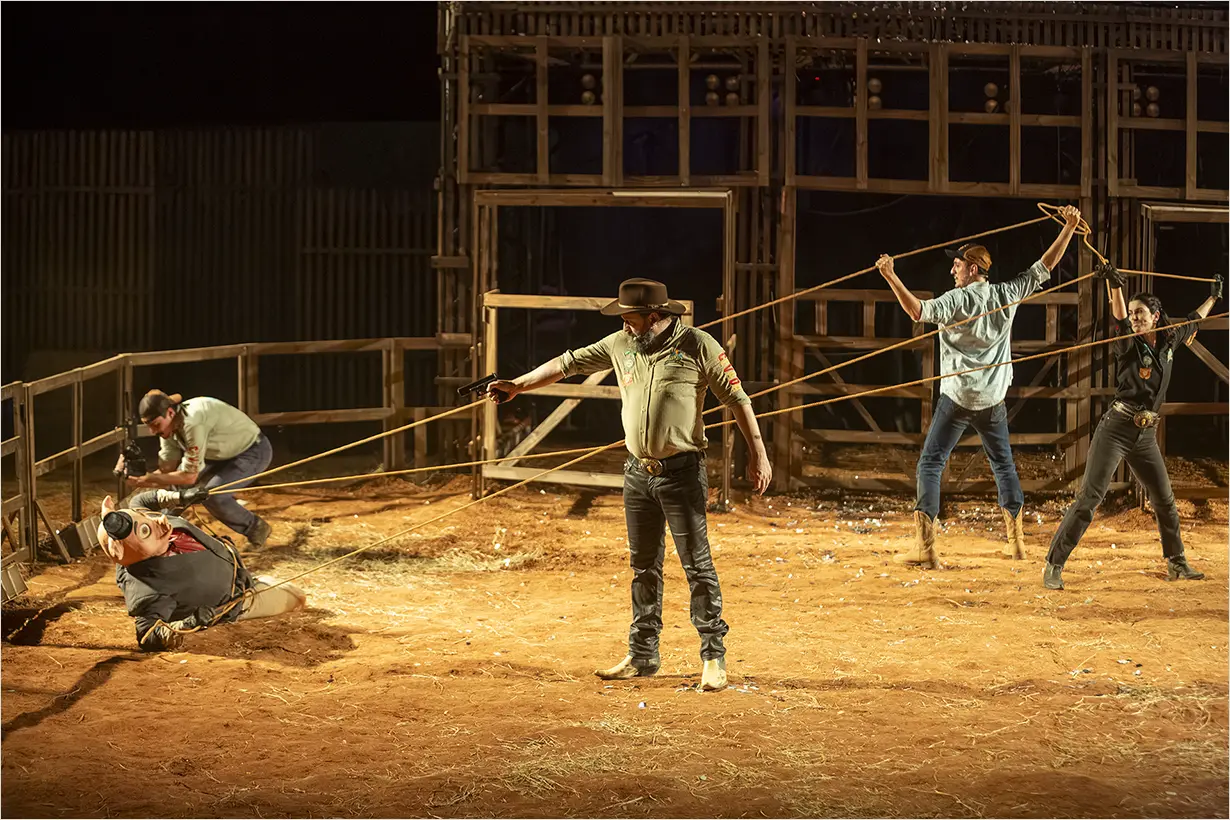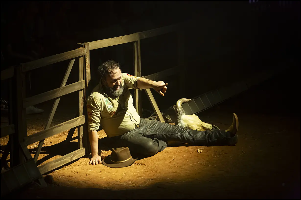 A montagem reafirma a trajetória do Teatro da Vertigem na investigação do Brasil por meio de experiências cênicas imersivas e ocupações de espaços não convencionais. O espaço se transforma em uma arena que evoca rodeios e disputas políticas, simbólicas e sociais, com a imersão como eixo central.