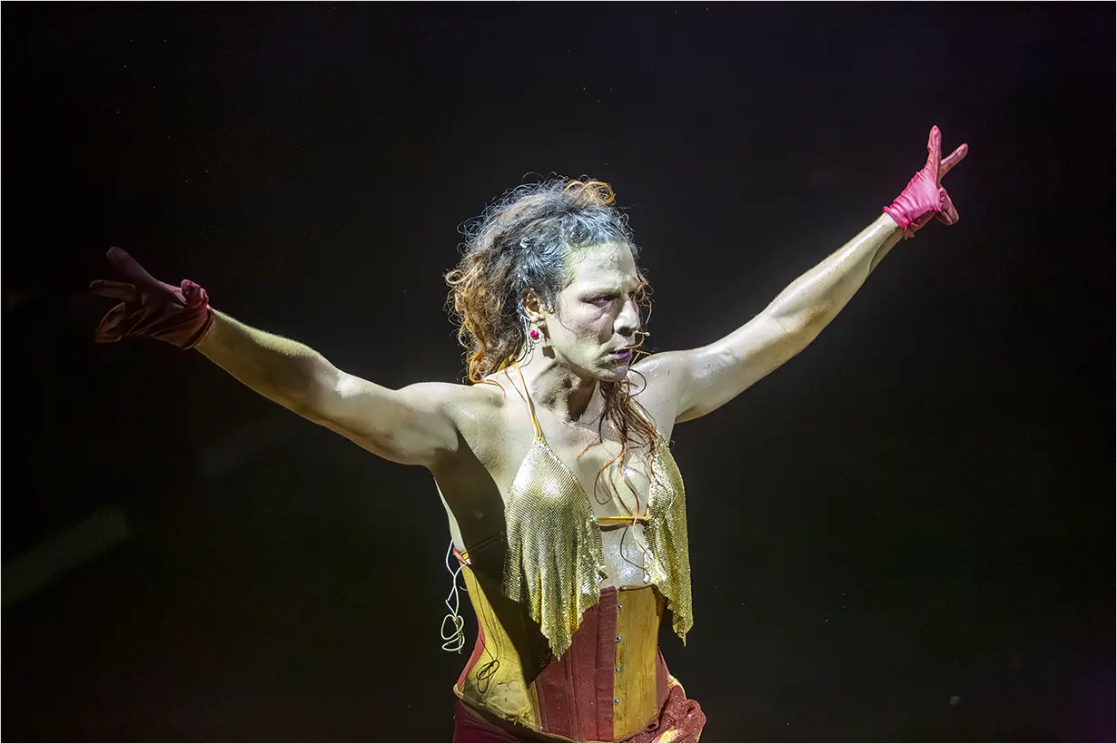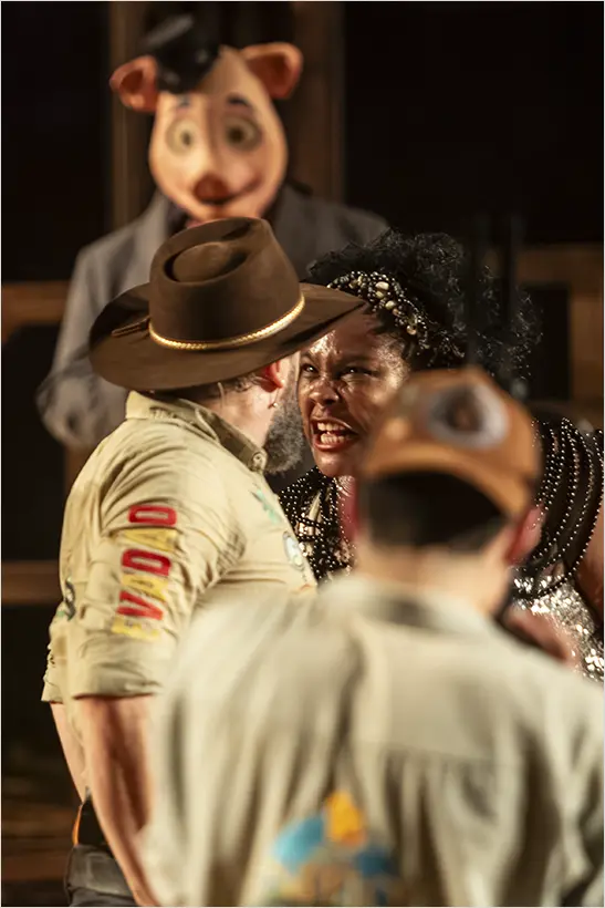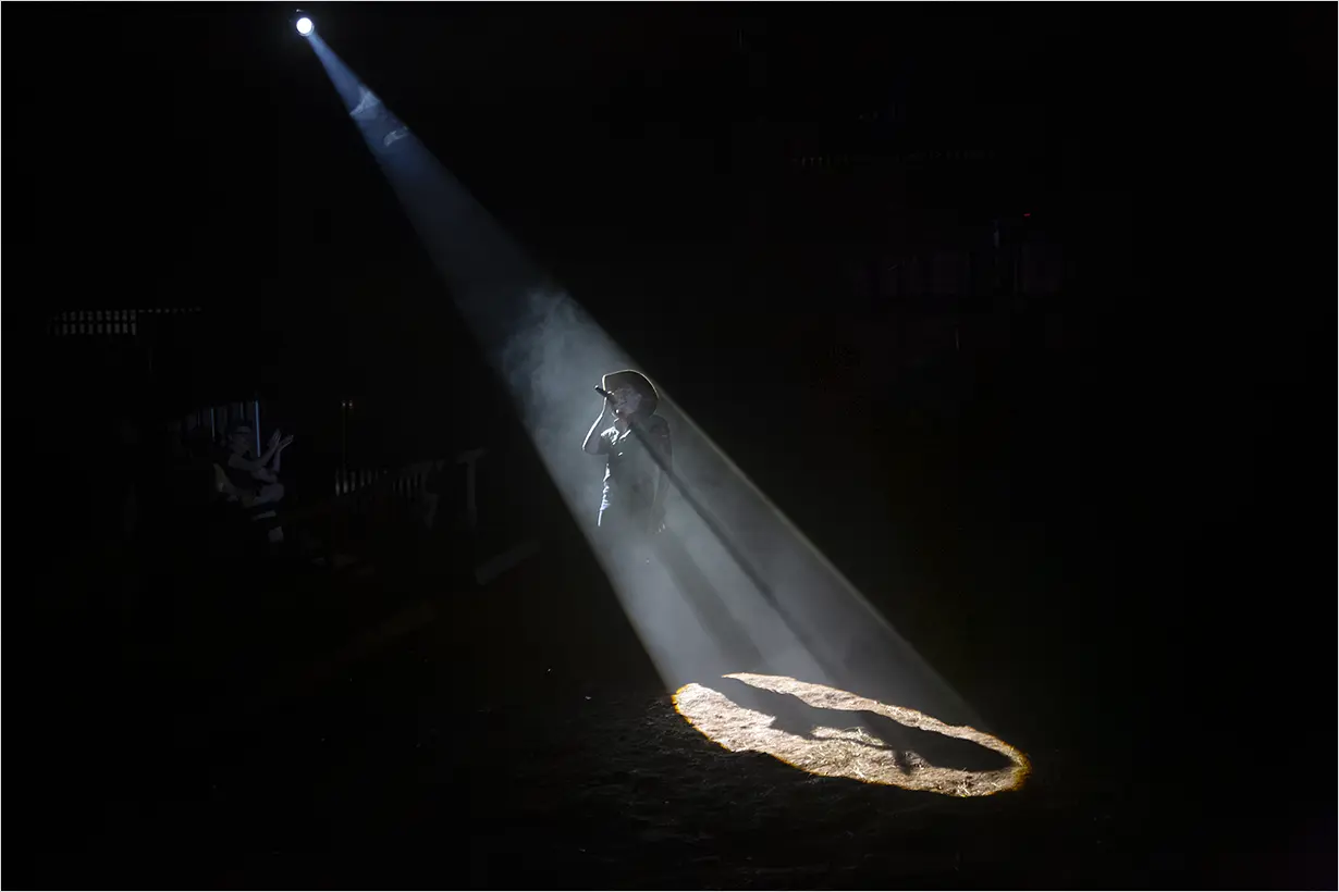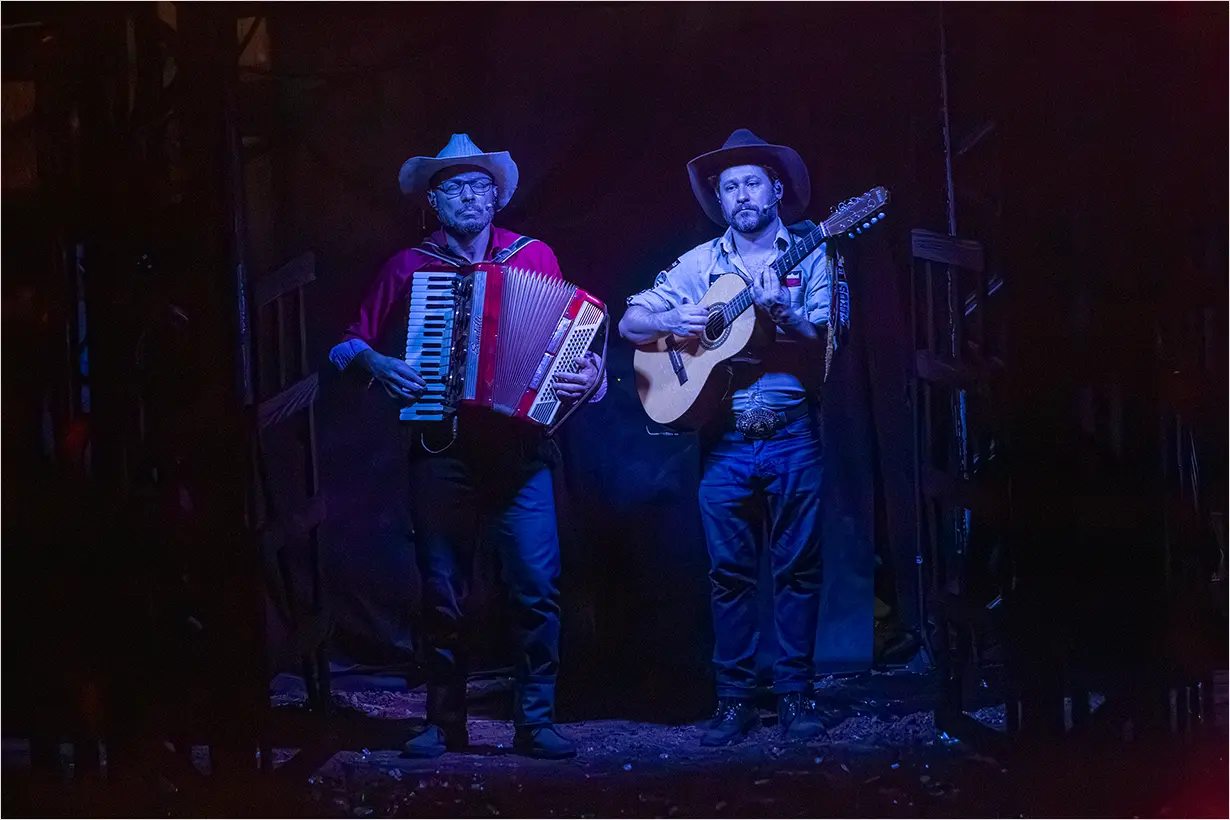 A montagem reafirma a trajetória do Teatro da Vertigem na investigação do Brasil por meio de experiências cênicas imersivas e ocupações de espaços não convencionais. O espaço se transforma em uma arena que evoca rodeios e disputas políticas, simbólicas e sociais, com a imersão como eixo central.