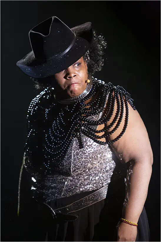 Um trecho em vídeo da peça, focado na personagem Tia Anastácia (interpretada por Mawusi Tulani). No trecho, ela se apresenta como a “Rainha de Sinop”, subvertendo expectativas e fazendo um discurso forte sobre independência financeira, processos judiciais contra políticos e a história de exploração e queimadas nas plantações de cana-de-açúcar, demonstrando o tom crítico e a linguagem da montagem.
