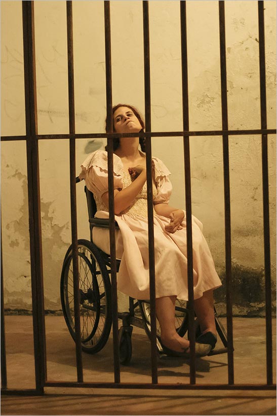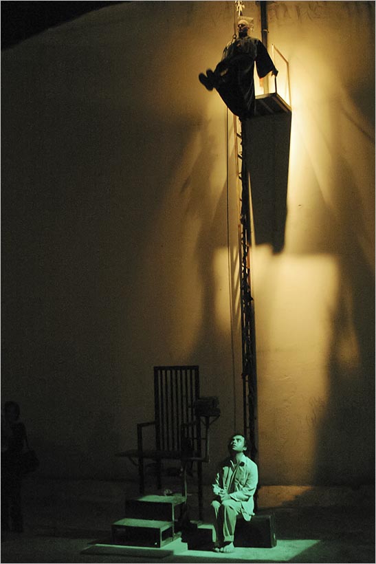 A primeira metáfora desse nó inextrincável é o presídio, lugar onde se aloja a encenação. Concreto e real, é também símbolo da Babilônia moderna, lugar onde silenciou a harpa, não se ouve mais o canto do moinho nem a voz do marido e da mulher. É onde desejaríamos circunscrever o mal e é, portanto, o lugar escolhido para mostrar como o que está dentro se parece com o que está fora.