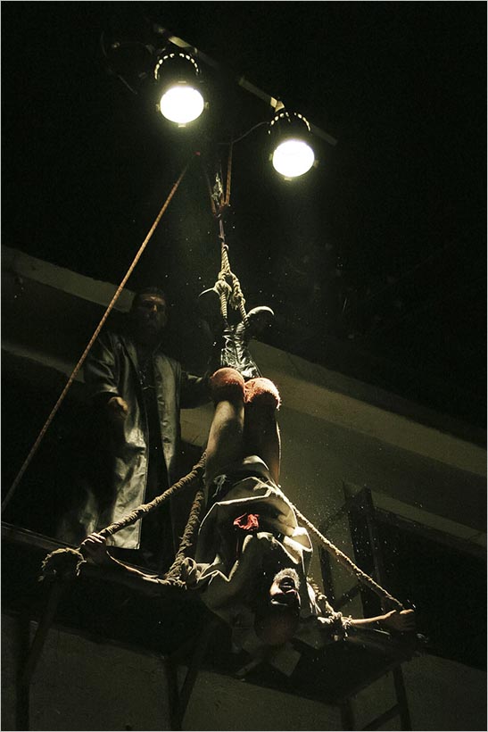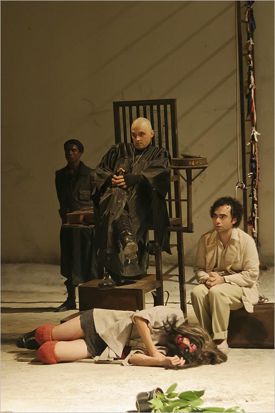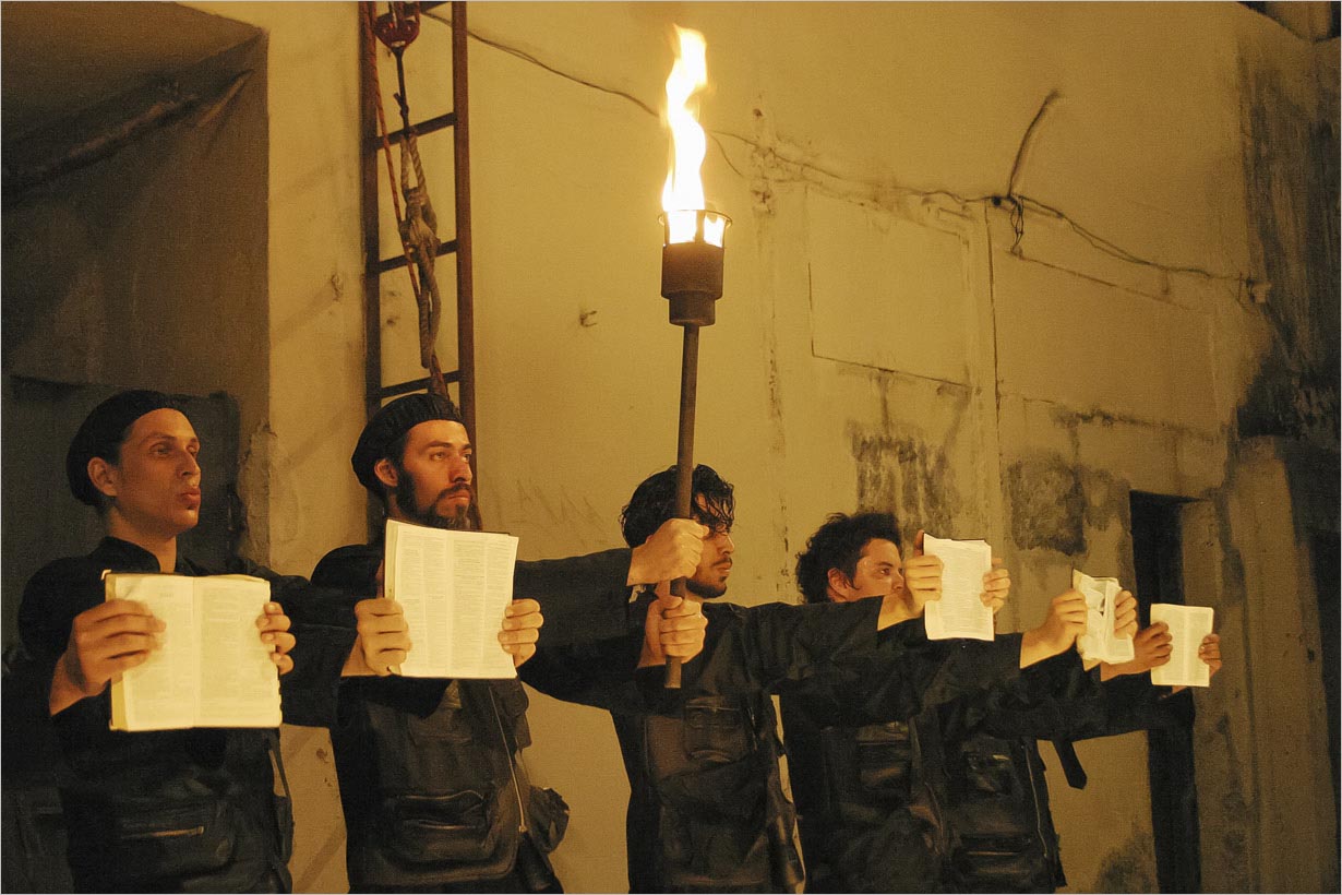 A rebeldia se manifesta na forma historicizada das figuras em cena. Não são inteiramente abstrações da iniqüidade e do sofrimento que cabem aos pecadores, mas figuras do presente cometendo e sofrendo os atos cruéis sem discernimento. É uma dramatização que omite os arquétipos de bondade e justiça que deveriam impulsionar a revelação. Fiel ao espírito deste tempo, quando a extensão das injustiças e do sofrimento torna quase impossível distinguir a origem e contemplar um fim, a versão do Teatro da Vertigem se abstém de separar o bem do mal, os justos dos pecadores.