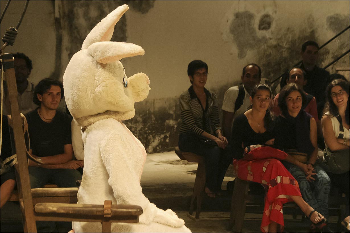 Há muitas coisas intrigantes e belas nessa premeditada confusão de final de tudo. Os palhaços eximindo-se de participar, o melancólico e gigantesco coelho e a inocência personificada por uma mulher de branco sugerem o estado alucinatório que propicia as revelações. Mas há também cenas pungentes pelo tratamento hiperrealista, nas quais reconhecemos fragmentos da nossa experiência cotidiana. É extraordinária, nesse sentido, a cena em que um homem negro é humilhado.
