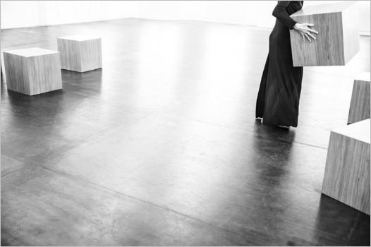 Material utilizado na performance: 10 cubos de madeira de 50cm X 50cm; 1 TV 42