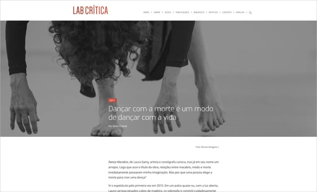 (…) Se a Dança Macabra que a inspirou, tem a ver com a Dança da morte, a Dança do fim dos dias, a Dança da peste, paradoxalmente, a dança que ela nos mostra é uma dança pungente e cheia de vida. Laura dialoga com autores importantes, como Blanchout, Didi-Huberman, Roland Barthes, se enamorou pelos filmes de Pasolini, escutou músicas, viu imagens, dispersou, abriu, expandiu, bateu asas e com tudo isso, entrou cada vez mais profundamente no universo da morte, do macabro, do obscuro e do sombrio. Mas fez tudo isso com tamanha delicadeza, que em nenhum momento do espetáculo pensei na morte, nem o seu figurino todo preto, nem mesmo o seu corpo despido largado ao chão, me remetiam à morte. E ainda, ela estava lá, “a morte como uma paisagem”. (…)