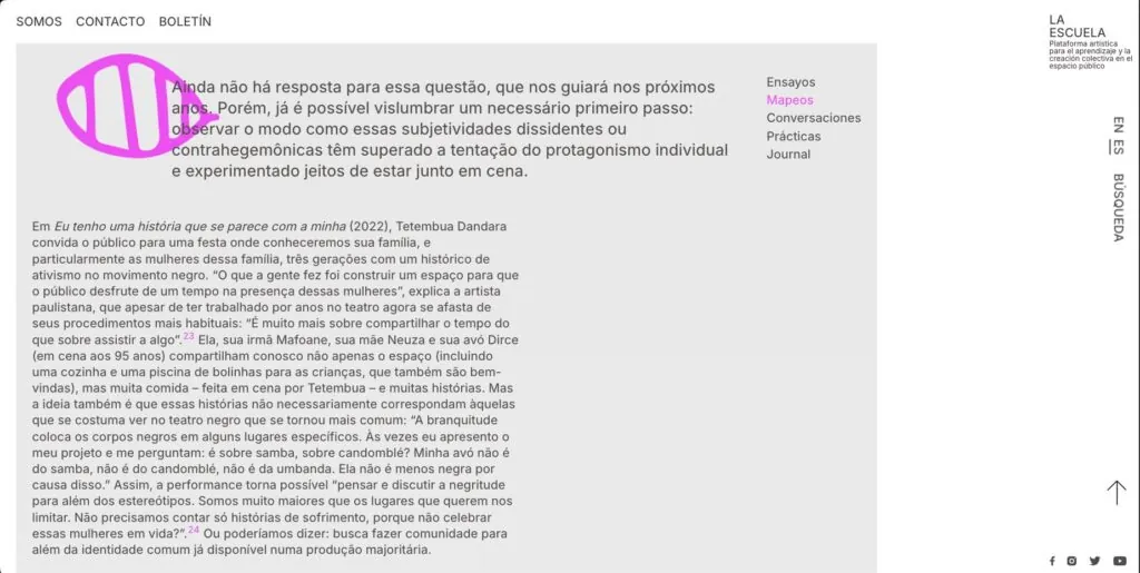 Assim, a performance torna possível “pensar e discutir a negritude para além dos estereótipos. Somos muito maiores que os lugares que querem nos limitar. Não precisamos contar só histórias de sofrimento, porque não celebrar essas mulheres em vida?”. Ou poderíamos dizer: busca fazer comunidade para além da identidade comum já disponível numa produção majoritária.