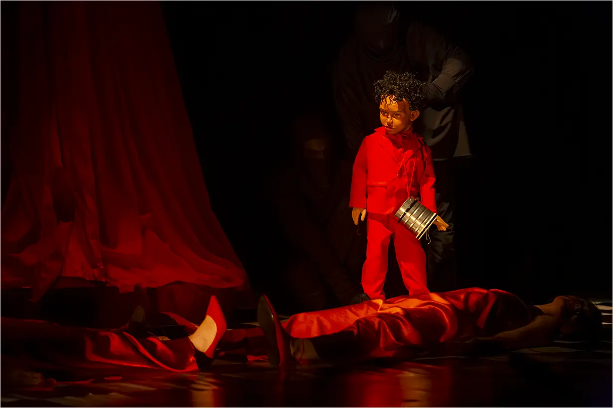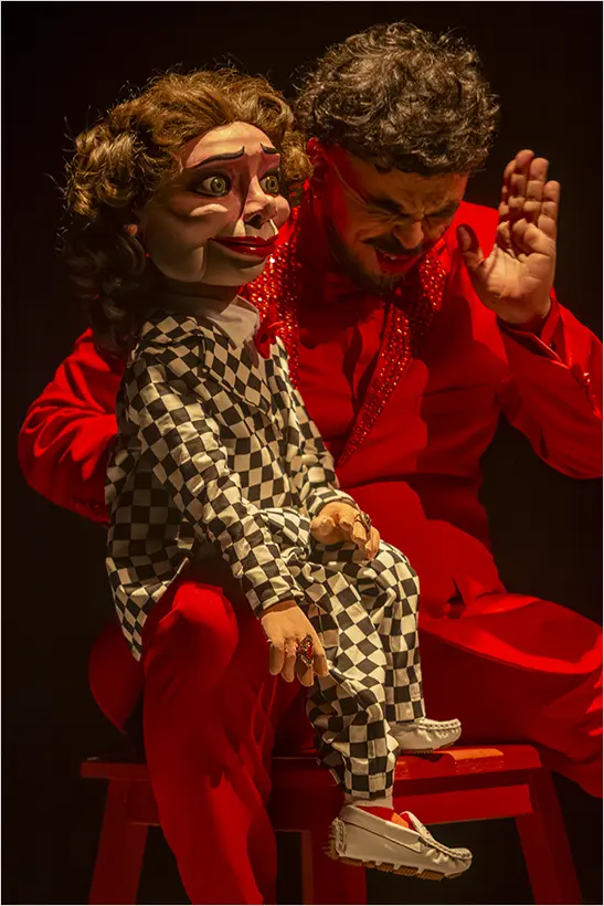 Com dramaturgia assinada e dirigida por Byron O’Neill, nome de destaque da cena mineira contemporânea, criada para ser construída de maneira colaborativa, a partir de improvisações dirigidas, partituras gestuais, fragmentos poéticos, fábulas e notícias de jornal, a montagem possui referências fortíssimas em trabalhos com temática surrealista, como os do cineasta norte-americano David Lynch (Mulholland Drive), e no teatro do absurdo, presente em obras do dramaturgo Samuel Beckett (Esperando Godot). No palco, o elenco manipula bonecos e também é manipulado por eles, em um jogo visual desafiador, chamando a atenção do público para as fronteiras entre humano e objeto, entre som e gesto, entre ouvir e ver.