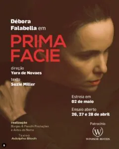 Desde a sua estreia em Londres, em 2022, ‘Prima Facie’ seguiu uma trajetória meteórica. Escrito por Suzie Miller, o texto ganhou dezenas de montagens ao redor do mundo, conquistou a Broadway e o West End inglês, virou objeto de disputa entre produtores e inspirou debates e esforços para mudar algumas leis britânicas. Em 2 de maio de 2024 , a peça chegou ao Brasil em uma versão inédita, dirigida por Yara de Novaes e estrelada por Débora Falabella, no primeiro solo de sua carreira.