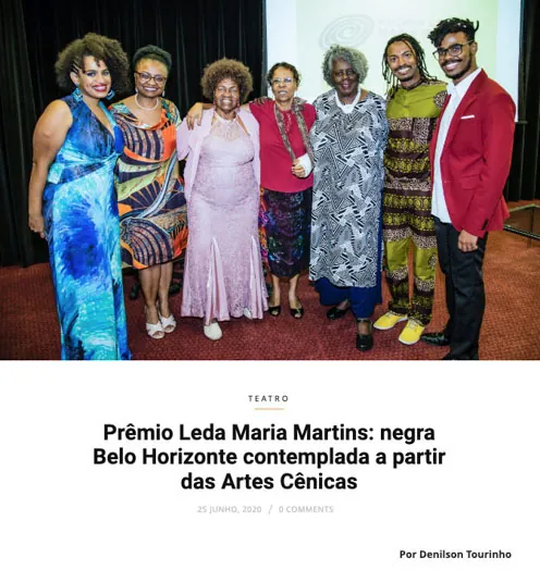 Denilson Tourinho é artista, mestre e doutorando em Educação pela Universidade Federal de Minas Gerais (FaE/UFMG), graduado em Letras e especialista em africanidades pela UnB. Pelo Festival de Arte Negra (FAN/BH) foi curador da 8ª edição e coordenador de ações formativas da 11ª edição. É idealizador e curador do Prêmio Leda Maria Martins. Foi contemplado com Troféu Mês da Consciência Negra da Secretaria de Direitos Humanos e Cidadania de Contagem (MG); 2º Prêmio Educar para a Igualdade Racial do Centro de Estudos das Relações de Trabalho e Desigualdades (SP), com o projeto O Poder da Palavra; Prêmio de Direitos Humanos e Cidadania LGBT do Centro de Luta pela Livre Orientação Sexual (MG), ao espetáculo Madame Satã. Atua em espetáculos, com circulação nacional e internacional, e em publicidade. Em cena, fotografada por Guto Muniz, estampa a capa do livro O Teatro Negro em Perspectiva: dramaturgia e cena negra no Brasil e em Cuba, do pesquisador Marcos Antônio Alexandre.