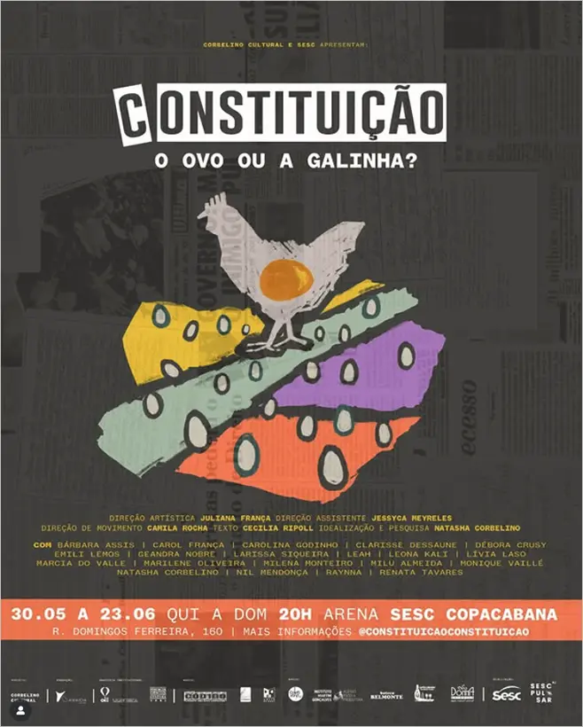 Idealizada por Natasha Corbelino, escrita por Cecília Ripoll e dirigida por Juliana França, montagem inédita leva ao palco 20 atrizes conversando com direitos e deveres de modo divertido e fluido tendo como base a Constituição de 1988.