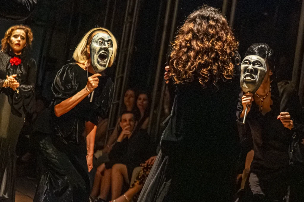 Escrita em 1947 por Nelson Rodrigues, Senhora dos Afogados é uma tragédia dionisíaca que expõe o inconsciente familiar à beira do colapso. Na casa impregnada de sal e luto à beira-mar — onde o oceano ecoa a psique dilacerada —, o juiz Misael (Marcelo Drummond) é assombrado por segredos inconfessáveis. Ao seu redor, giram Moema (Lara Tremouroux), filha intuitiva e intensa, e Eduarda (Leona Cavalli), esposa central em uma teia de silêncios, poder e ressentimentos. Paixões incestuosas, mortes e delírios se misturam em clima fantasmagórico, reforçado por coro de “putas do cais”, trilha original e ambientações sensoriais.