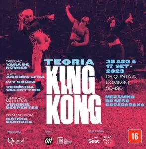 Teoria King Kong é um espetáculo com uma dramaturgia não-realista, onde três atrizes buscam, através de suas traduções e vivências, trazer para a realidade brasileira alguns temas abordados pela escritora francesa Virginie Despentes. O espetáculo apresenta –– numa espiral cheia de humor e acidez, reflexões para um possível pacto civilizatório. Protagonizam a montagem três das mais brilhantes atrizes da nossa geração, Amanda Lyra, Ivy Souza e Verónica Valenttino, sob a direção de Yara de Novaes.